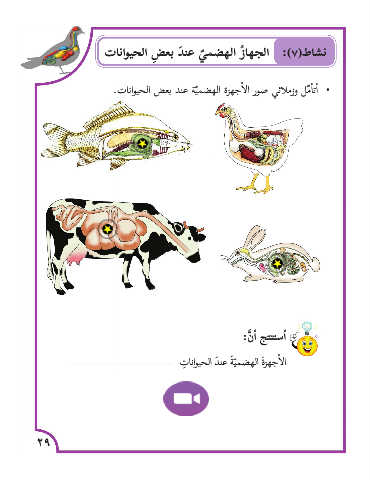 نشاط( :)٧الجها ُز الهضم ّي عن َد بع ِض الحيوانات •�أت�أ ّمل وزملائي صور ال�أجهزة الهضم ّية عند بعض الحيوانات. أ�ستنتج أ� َّن: ال�أجهز َة الهضميّ َة عن َد الحيوانا ِت 29