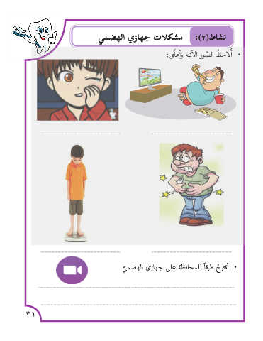 نشاط( :)2مشكلات جهازي الهضمي •�ألاح ُظ ال ّصور ال�آتية و�أعلِّق: •�أقتر ُح طرقاً للمحافظة على جهازي الهضم ّي 31