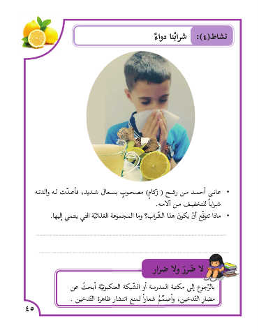 •عانـى �أحمـد مـن رشـح ( زكا ٍم) مصحـو ٍب بسـعال شـديد ،ف�أعـ ّدت لـه والدتـه