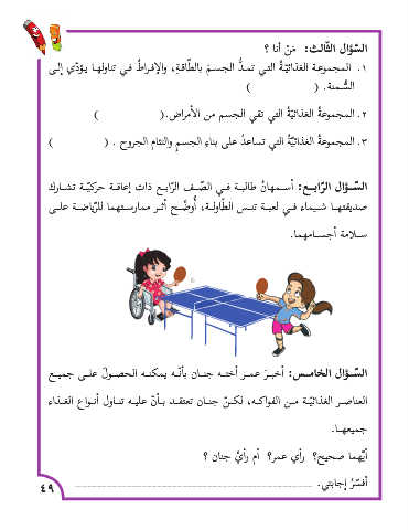 ال ّســؤال ال ّرابــع� :أســمها ُن طالبــة فــي ال ّصــف ال ّرابــع ذات �إعاقــة حركيّــة تشــارك