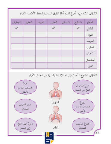 ال ّسؤال ال ّسادس� :أض ُع �إشار ًة �أما َم الطر ِق المناسب ِة لحفظ ال�أطعمة ال�آتية: