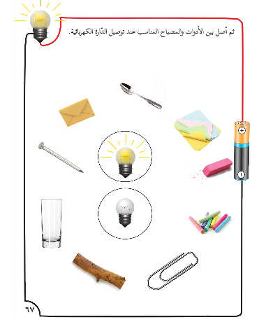 ثم �أصل بين ال�أدوات والمصباح المناسب عند توصيل ال ّدارة الكهربائية. 67