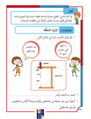•�أحاو ُل تمرير مواد مختلفة بين المغناطيس وال إ�برة بحيث لا تُلامس المغناطيس،