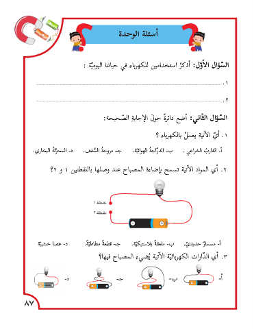 ال ّسؤال ال�أ ّول� :أذك ُر استخدامين للكهرباء في حياتنا اليوميّة :