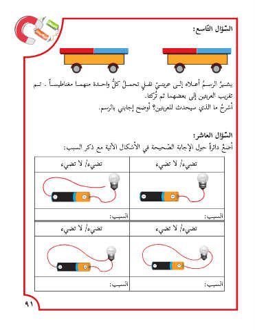 يشــي ُر الرســ ُم �أعــلاه �إلــى عربتــ ْي نقــ ٍل تحمــ ُل ك ُّل واحــدة منهمــا مغناطيســاً .تــم
