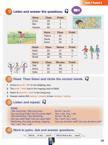 4 Hassan swims 200 metres / minutes in two minutes / metres.