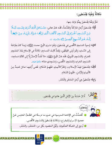 اــل ۦِهِدــبعب ىسأ يِلٱ نحبــس﴿ :ىــلاعت َلاــق دــْقَف ،ٌةــسَّدَقمو ٌةــَكرابم ضْرأا نيطــسَلف -�لوأا