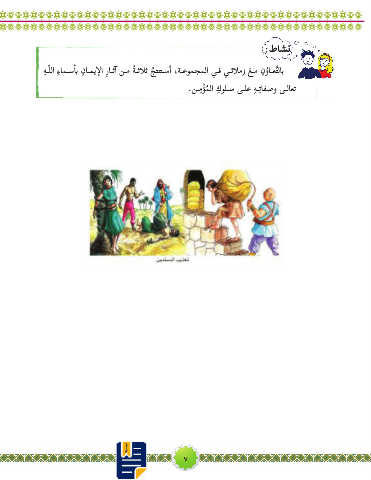 :طاشن ِ ِ ِ ِ هــّللا ءامــسأاب ناــمي إ �لا ِراــثآا نــم ًةــثالث جتنتــسأا ،ةــعومجملا يــف يــئالمز عــم نواــعَّتلاب َ ُ ُ ِ ِ ِ ِ .نــمْؤملا كولــس ىــلع هــتافصو ىــلاعت ُ ٧