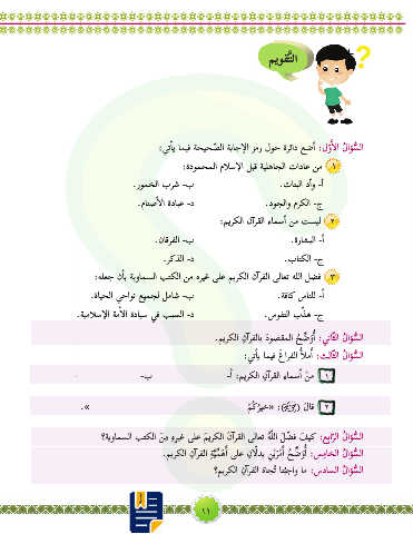 .ميركلا نآارقلا ةيمَهأا ىلع ن�لدي ِنيرمأا ح ِّ ضوأا :سماخلا ُلاؤسلا