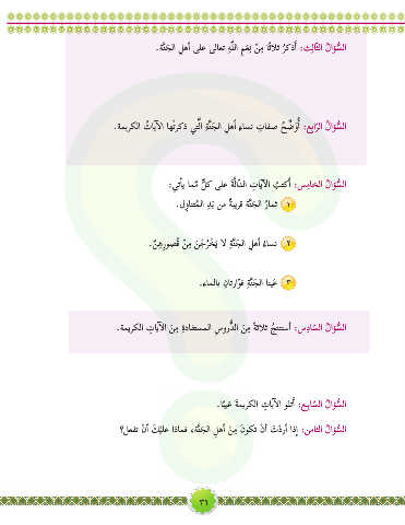.ةميركلا ُ تايآ�لا اهْتركذ يتَّلا ةَّنجلا ِلهأا ءاسن تافص ح ِّ ضوأا :عِبارلا ُلاؤسلا