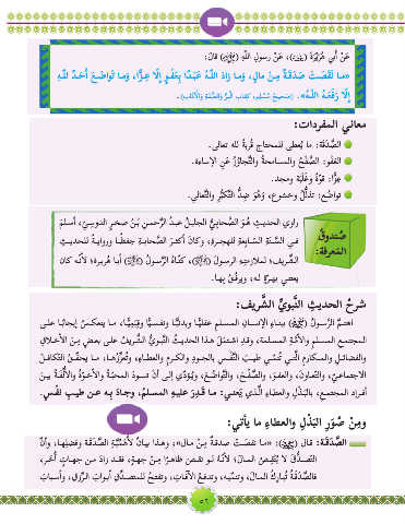 هــّلل ٌدــَحأا َعــ َ ضاوَت اــمو ،اًّزــع �لِإا ٍوــفَعِب اًدــبَع ُهــّللا َداز اــمو ، ٍ لام ْ نــم ةــقَد َ ص ْ تــ َ صقَن اــم«