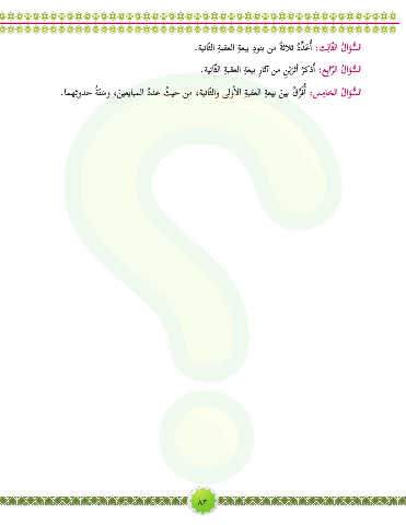 .امهثودح ُةَنسو ،نيعيابملا ُددع ُ ثيح نم ،ةيناّثلاو ىلوأ�لا ةبقعلا ةعيب نيب ُقرَفأا :سماخلا ُلاؤسلا