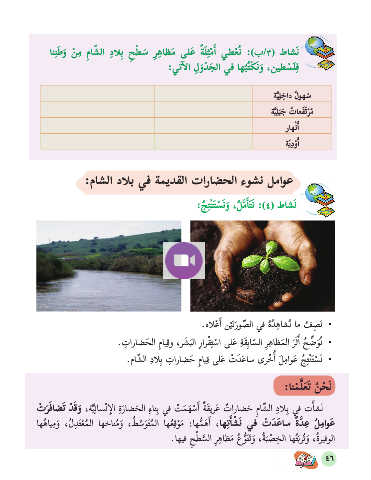 اننطو ْ نم ِماشلا دالِب حطس ِرهاظم ىلَع ةَلثْمأا يطْعُن :)ب/٣( طاشَن