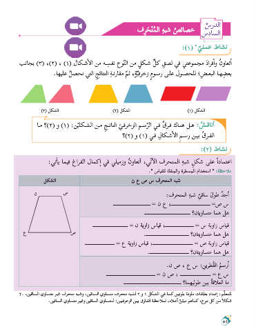 اعتماداً على شك ِل شب ِه المنحرف ال�آتي ،أ�تعاو ُن وزميلي في �إكمال الفراغ فيما ي�أتي: